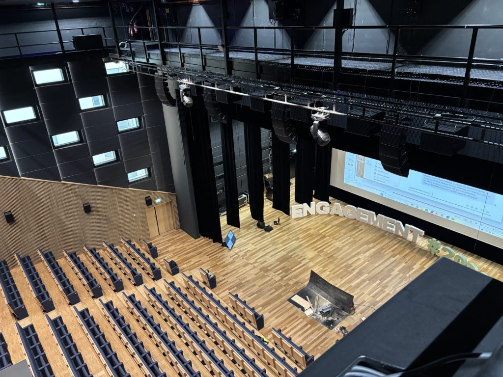 De la salle plénière modulable de 700 places à la salle d’exposition, des salles de presse aux régies, en passant par les espaces de déambulation.