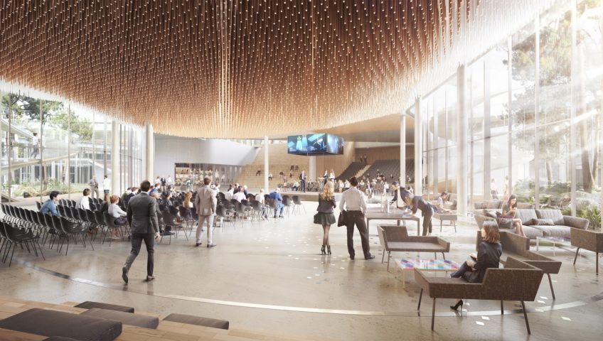 Salle de concert de 7000 places (+ 1 500 places extérieures) inséré dans le pôle de loisir et de commerces “EuropaCity” conçu par BIG architecte. Le toit de la salle est également la place belvédère sur laquelle arrive la promenade depuis la future gare de Gonesse.
