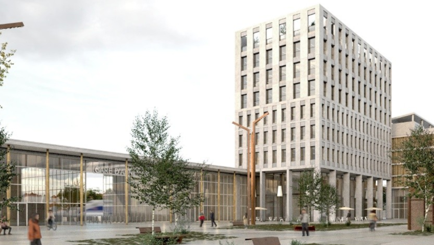 Construction d’un immeuble de bureaux, avec socle de commerce. Comprenant un ERP, des plateaux de bureaux en blanc, locaux techniques ainsi qu’une toiture en terrasse végétalisée. Le projet est à proximité immédiate d’une gare ferroviaire et d’une gare routière.