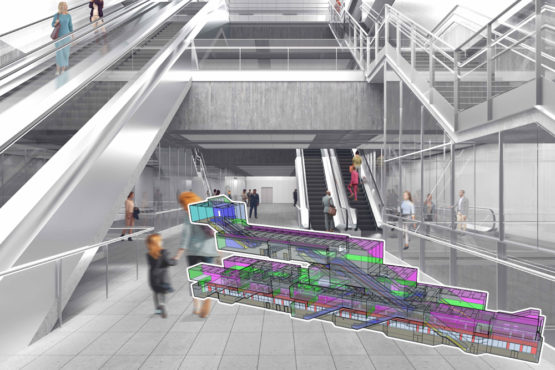 Mission de conception de l’acoustique interne de la gare, et études de sonorisation avec modélisations acoustiques 3D (calculs SPL, STI, D50,…) et dimensionnement et étude de localisation des HP en phase AVP à PRO.