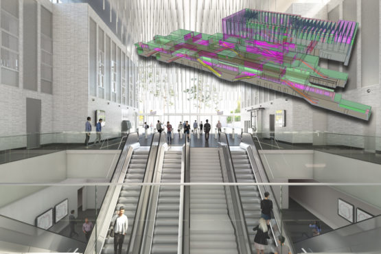 Mission de conception de l’acoustique interne de la gare, et études de sonorisation avec modélisations acoustiques 3D (calculs SPL, STI, D50,…) et dimensionnement et étude de localisation des HP en phase AVP à PRO.