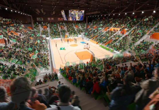 Construction d’une salle à vocation sportive, culturelle et événementielle : salle principale avec gradins, espaces réception et médias, salle d’entraînement, centre de formation.
